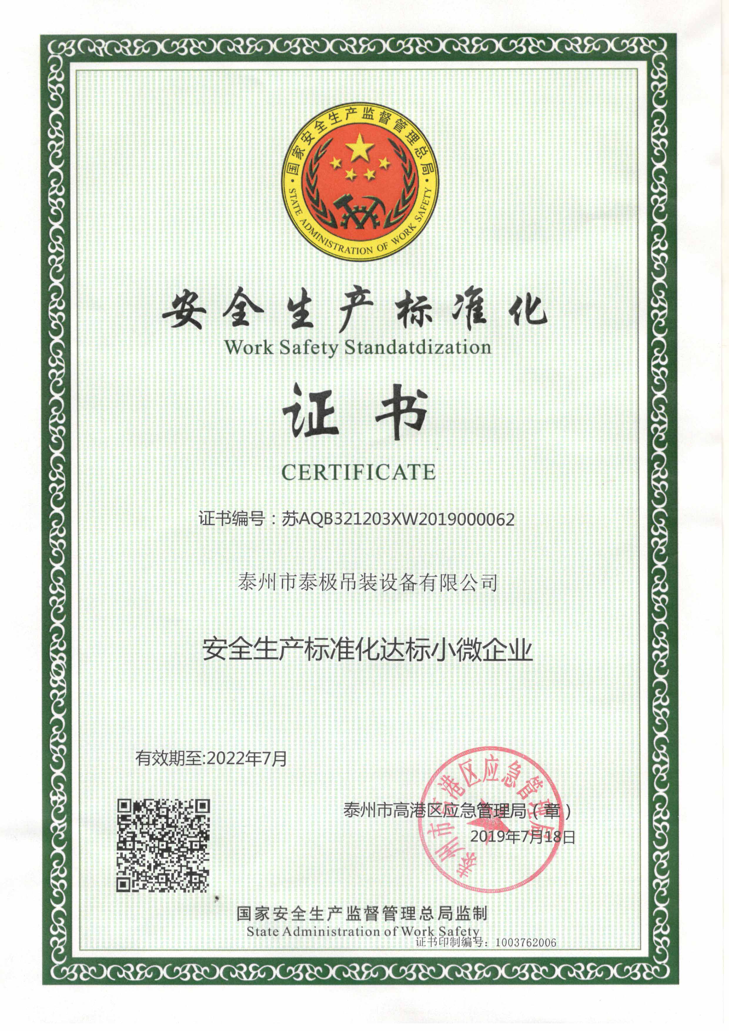泰州市泰極吊裝設備有限公司位于長江三角洲,公司創建于一九八四年三月,因區域劃分和企業發展需要,企業經歷(原泰興縣起吊用品廠、泰興市繩網起吊用品廠、泰興市鼎力起吊用品有限公司),于二○○三年成立泰州市泰極吊裝設備有限公司,目前擁有固定資產2000萬元人民幣,占地面積28000平方米,員工人數400余人,其中機械制造研究生以上8人,大、中專以上學歷60人。年產值6950萬元,其中出口300萬美元。